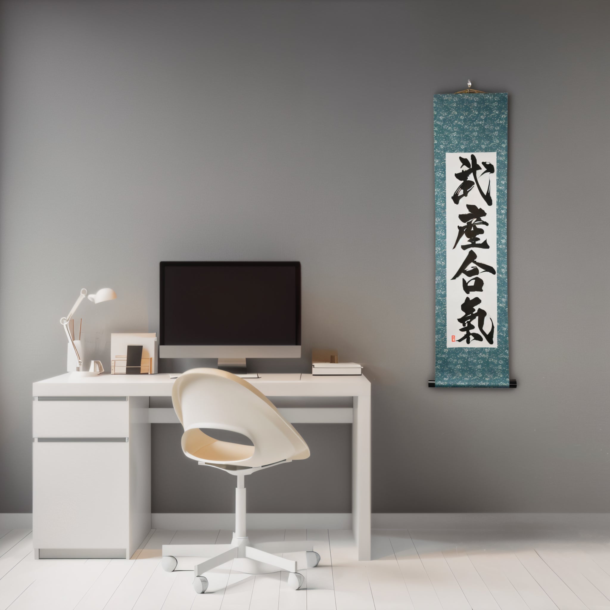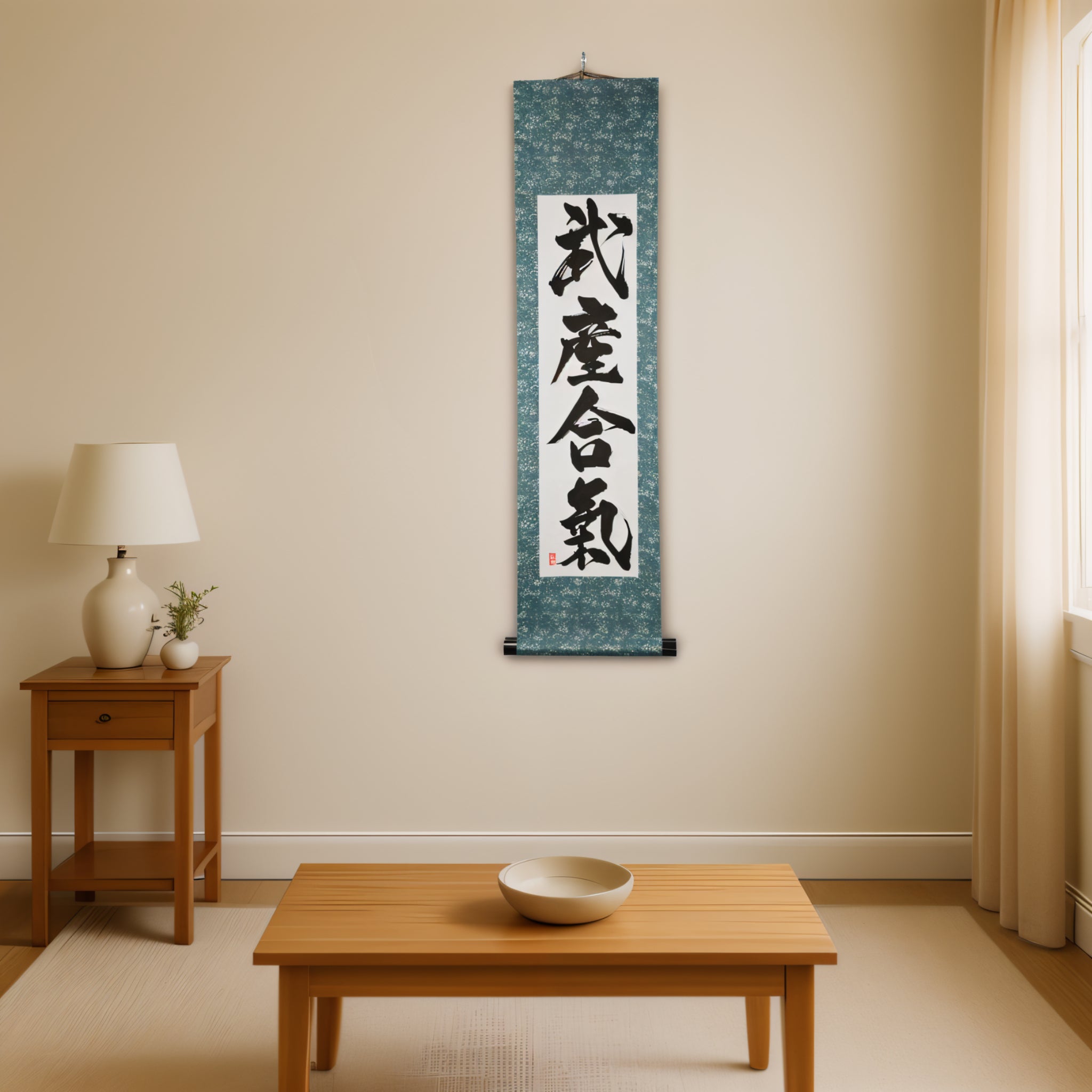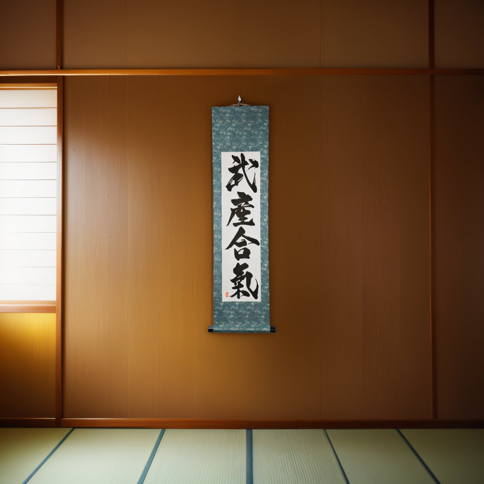 Ce rouleau sert d'ancre spirituelle et d'inspiration — un rappel que la voie ultime de l'Aïkido ne réside pas seulement dans la maîtrise de la forme, mais dans la naissance de l'harmonie à travers l'esprit martial.